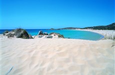Pláže, které obklopují Chia Laguna Resort jsou jedny z nejkrásnějších ve Středozemním moři a nabízí podobné scenérie jako pláže na exotické dovolené: bílé duny, průzračnou mořskou vodu, stoleté jalovce a laguny hrající až tyrkysovými barvami. Pláž "Dune di Campana" je rezervovaná pro hosty hotelů Oasi, Laguna a Village. Má velmi jemný bílý písek, který na krajích tvoří romantické písečné duny. Pláž je vzdálena 700 metrů od hotelu a hosté mohou využívat pohodlný elektrický vláček, který jezdí každých 15 min (mimo hl. sezónu je interval 30 min) od hotelu na pláž po celý den. 1. a 2. řada lehátek a slunečníků je na vyžádání a za poplatek (pokoje Oasi Balcony Suite mají 1. řadu v ceně), od. 3. řady plážový servis zdarma, plážové osušky k zapůjčení také zdarma. Hosté mohou zdarma využívat i vedlejší pláž Monte Cogoni, která se nachází v blízkosti hotelu Baia (plážový servis v 1. a 2. ř. za poplatek, od 3. řady zdarma).