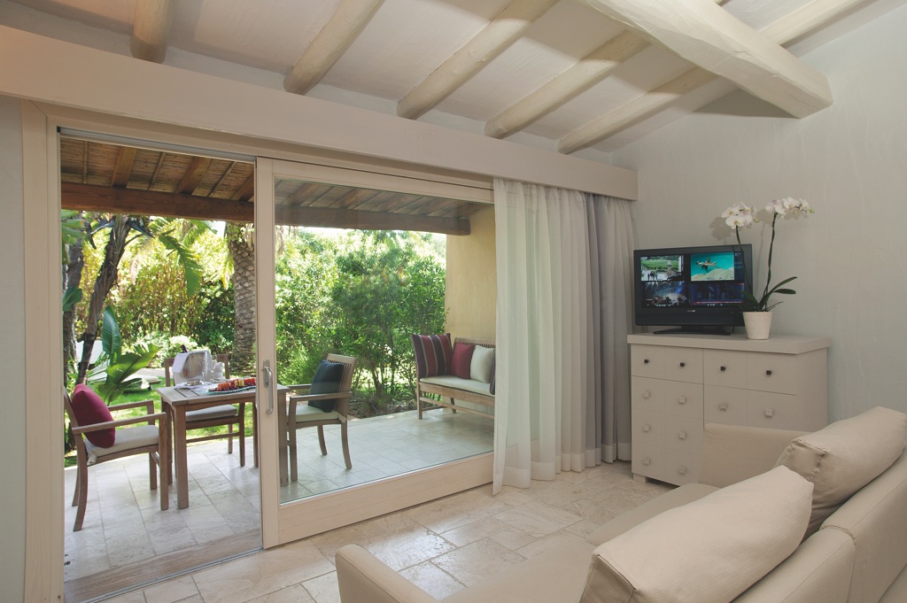Ústraní soukromých bungalowů a suitů v tropické zahradě spolu s VIP službami hotelu světové úrovně v jednom z nejluxusnějších resortů na Sardinii s kvalitní a širokou nabídkou služeb a zábavy, který uspokojí i nejnáročnější klienty.