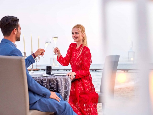 Snídaně a večeře jsou podávané v restauraci LE DUNE, gourmet restauraci s výhledem na moře.