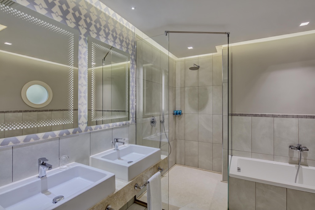 Všechny pokoje jsou vybaveny koupelnou se sprchou a vanou, fénem, klimatizací, telefonem, TV/Sat, minibarem, trezorem a terasou nebo balkonem.