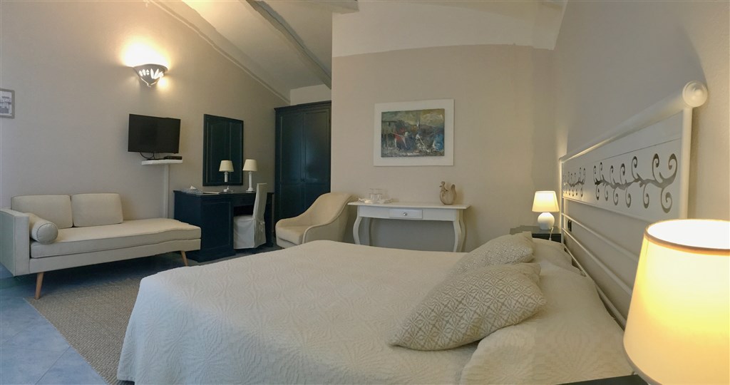 SUPERIOR - (20-25 m²) dvoulůžkové pokoje, oproti typu Standard je zde panoramatická terasa, jacuzzi, župan a přezůvky, DVD a CD přehrávač, individuální klimatizace, sada pro přípravu čaje (vč. konvice). Pokoje jsou zařízené historickým nábytkem, uměleckými ručně zpracovanými tkaninami, jemným ložním prádlem a přiznanými stropními trámy, které dávají pokoji útulný ráz. Lůžko je o velikosti 190 x 170 cm. Max. obsazenost 2 dospělí.