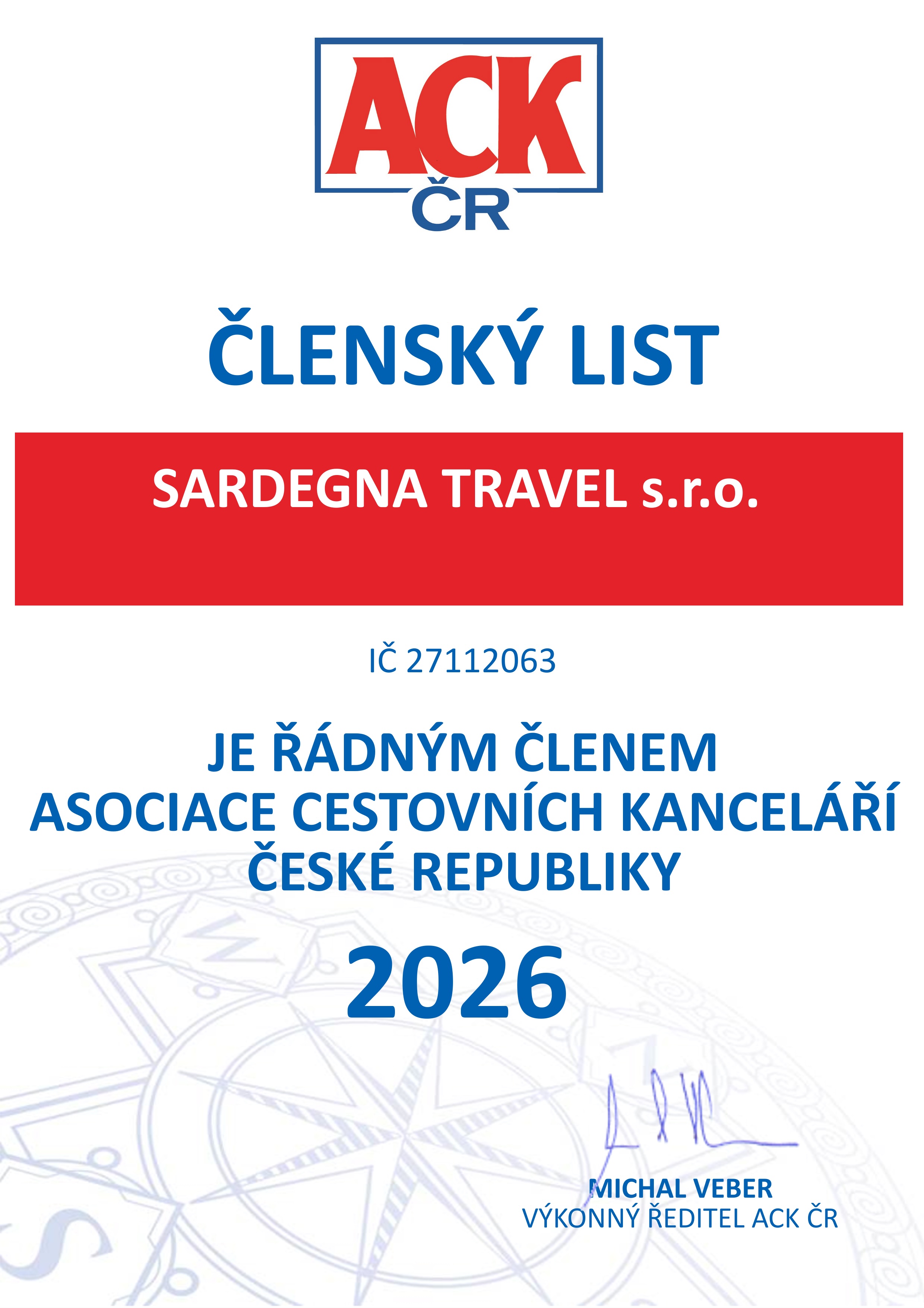 ACK ČR Asociace cestovních kanceláří České republiky - Členský list