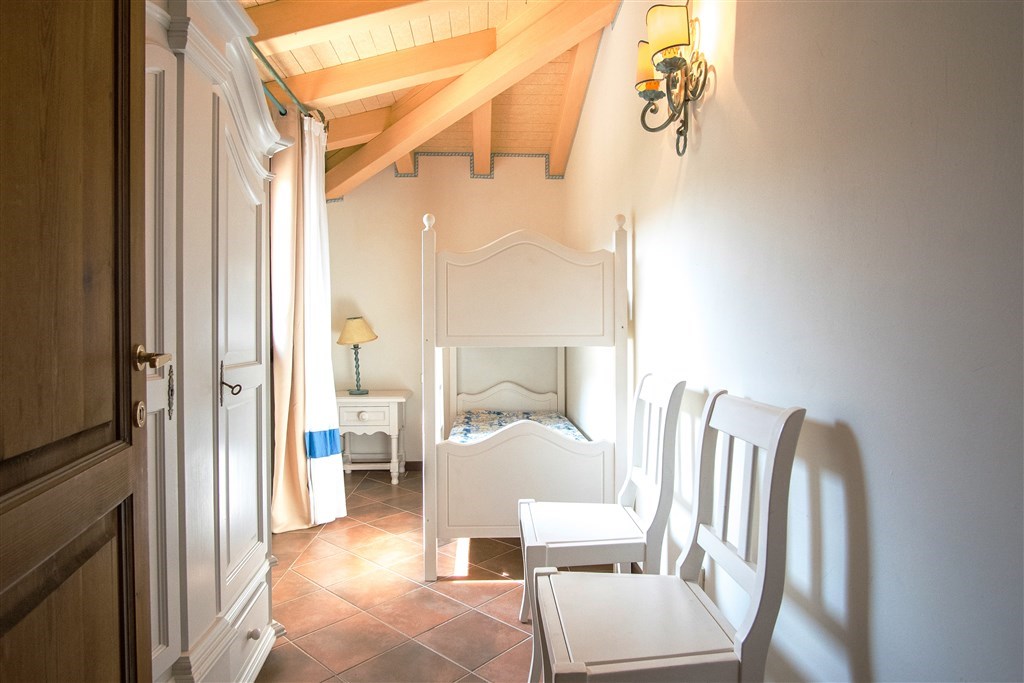 Residence disponuje 21 elegantními apartmány vybavenými typickým nábytkem pro oblast Costa Smeraldy, které doplňují detaily z mořeného a tepaného železa.